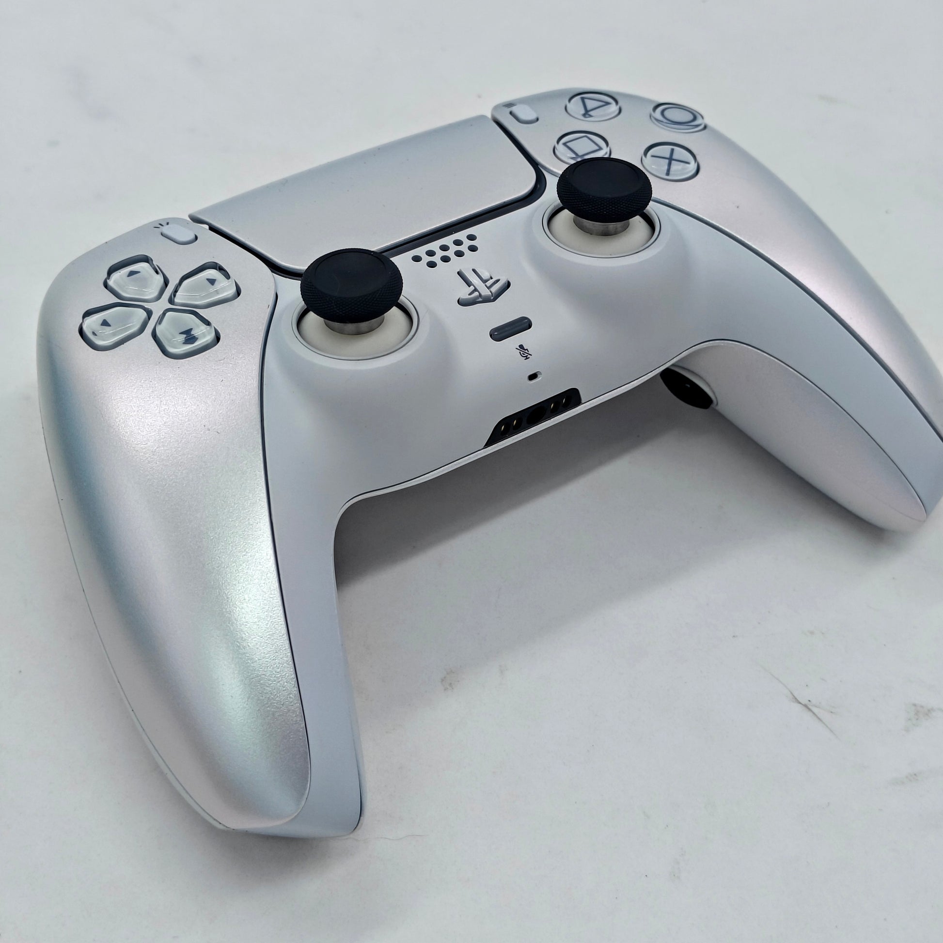 This Chroma Pearl Dualsense controller is intended for those that want to be able to play all kinds of games with it. I have removed the thumbsticks and replaced them with "Drift-resistant" Adjustable Tension Hall Effect modules with Gulikit TMR sensors! Enjoy Elite Series 2 swappable thumbsticks and tension adjustment on PS5! My custom stick bases allow tension adjustment from 58g up to 105g and anywhere in-between.