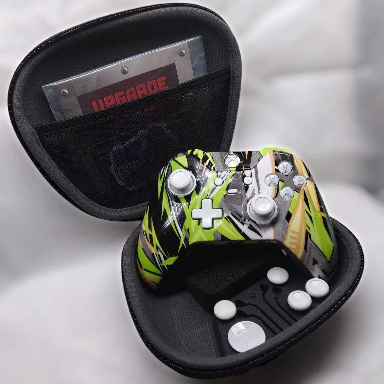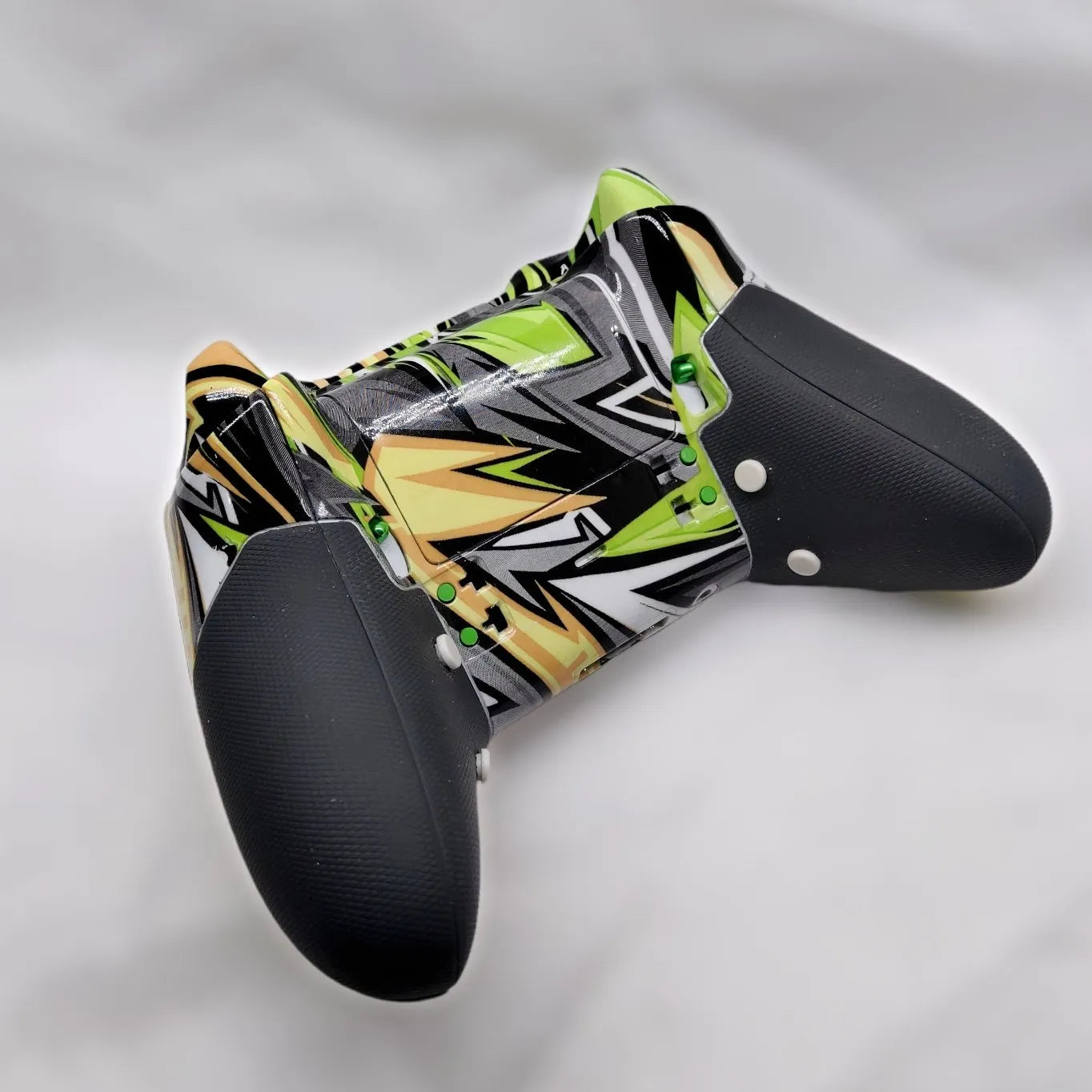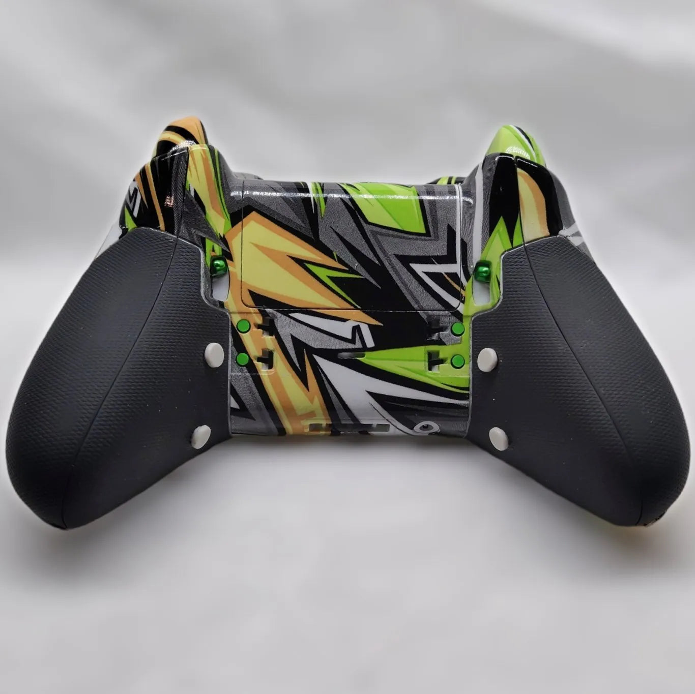 - Fully customized shell, faceplate, side grips, backplate, battery cover, triggers, bumpers, and bumper/guide button assembly ALL hydrodipped into “Yellow Grunge” Pattern